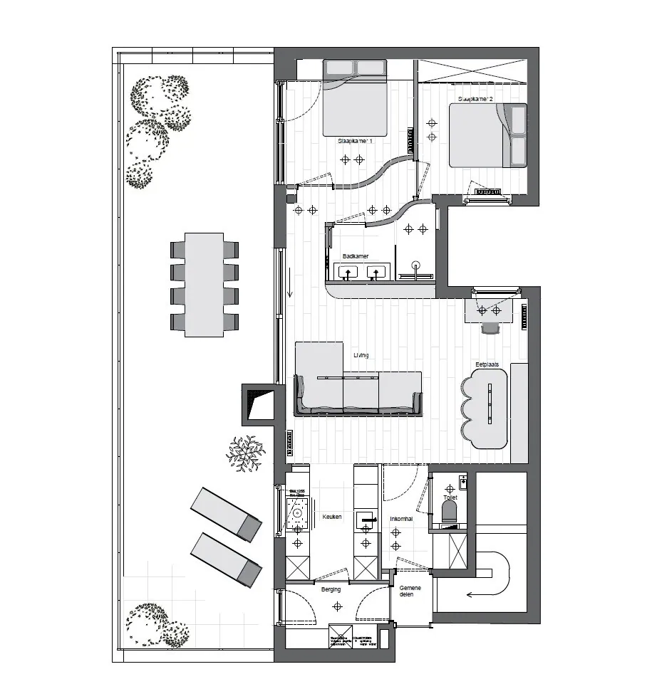 Découvrez ce penthouse exclusif à Nieuport! Bauhaus Projects a entièrement rénové ce spacieux penthouse, offrant une belle vue latérale sur la mer, situé à proximité de la digue. Le point culminant absolu de cet appartement magnifique est sa terrasse de pas moins de 63m², où vous pourrez profiter de la vue sur la mer et les dunes. L'appartement dispose de deux chambres, dont une avec accès direct à la grande terrasse. En entrant dans l'appartement, vous trouverez des toilettes séparées et un vestiaire. La cuisine moderne est élégante et équipée d'appareils de haute qualité, avec un magnifique plan de travail en pierre naturelle. Il y a aussi un débarras adjacent à la cuisine. Le salon est lumineux et offre un accès direct à la terrasse entièrement rénovée via une baie vitrée. La salle de bains est équipée d'un meuble double vasque et d'une douche à l'italienne. Cet appartement est fini dans les moindres détails, y compris la peinture et l'éclairage sur mesure! De plus, il est possible de faire styliser l'appartement par RR Interieur Nieuport, comme visible sur les images. Le match parfait avec votre goût et vos préférences personnelles! En bref, un joyau sur la côte ouest, à vous de le découvrir.